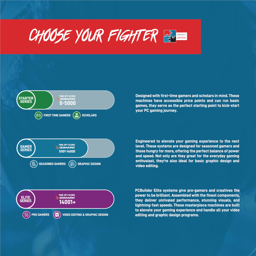 Built in-house by our experienced technicians, each build is constructed with care and precision. They’re packaged with protective foam that secures the components while in transit, so every build arrives at its destination ready to game from day one. PCBuilder gaming PCs come with a 2-year warranty.